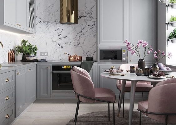 Popular colour combination with neutral grey, an excellent base colour for balance and minimalist aesthetics.