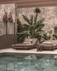 Exotic, tropical style. Lush palm leaves, exotic floral and jungle motifs.