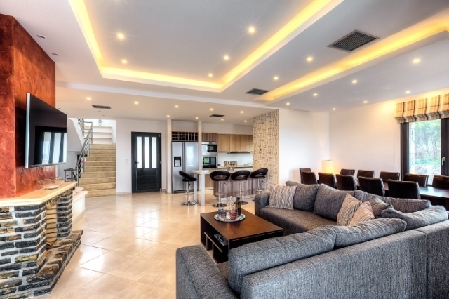Luxurious villa 280m2 completed in 2014 is available for sale near the historic town of Neapoli. It is located 4km from the beach, 20km from Neapolis and 45km from the airport. The villa is developing in 3 floors. Entering the ground floor we come across an open-plan area that hosts the spacious and fully equipped kitchen, the dining and the living room with the fireplace. On the same floor there are 2 double bedrooms, each with its private bathroom and its own access to the deck of the pool. From the internal staircase we head to the upper floor where there is the large master bedroom with a bathroom, a living room and a fireplace. From its terrace there is access to the outdoor Jacuzzi, with sun loungers and a seating area, enjoying the magnificent sea views. On the lower floor there are additional 3 bedrooms, the two with two single beds and the one with a double bed, all with their private bathroom. Also on that floor are the washing machine and the garage entrance. Outside, the villa is decorated with stone walls. On its spacious veranda there are 10 deck chairs, a large outdoor lounge, seating, BBQ, while the pool is 140m2. There is also a smaller pool of 20m2 for the children. The garden, which extends around the house, features lawns, flowers, trees, beautiful stone paths and a well. All rooms are equipped with satellite TV, air conditioning and the bathrooms have shower. It is no doubt a great choice for your permanent or holiday home that combines luxury and splendid views in a tranquil area close to all amenities.