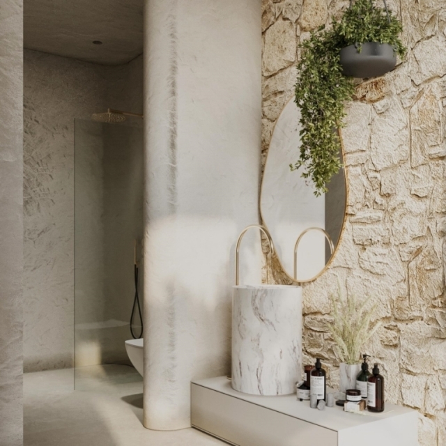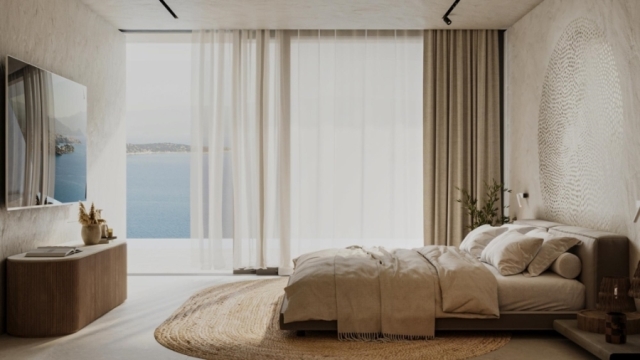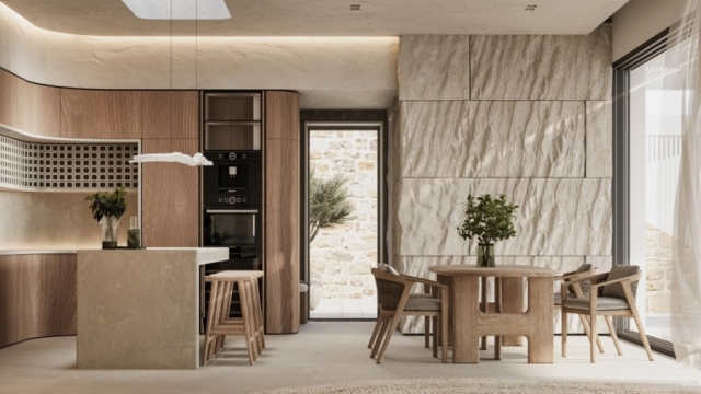 Furnished delightful modern villa of 340m2 is available for sale just 300 meters from the sea, 4km from scenic Agios Nikolaos and 69km from Heraklion International Airport. Within a land plot of 3.300 m² offers wide and unobstructed views of Mirabello Bay and the distant mountains. The ground floor opens in a hall with a characteristic stone staircase and consists of a living room with a modern fireplace, a dining room opening onto a large veranda, a separate kitchen, an office room, a laundry room and a W.C. The staircase leads to the upper floor where it consists of the master bedroom with two wardrobes and an internal bathroom with shower, three comfortable bedrooms and a bathroom with a hydromassage bath. In the basement there is an unfinished guesthouse with an independent entrance that has an open plan kitchen – living room, two bedrooms and a bathroom. Designed according to the specifications of luxurious residence, it has all the modern comforts such as: air conditioning, solar heating, central heating, alarm, entrance phone, satellite and double glazing. Outside there is a living area with a pergola, a swimming pool, parking area, a closed garage of a vehicle and a wonderfully landscaped garden. Essentially contributing to quality excellence and flawless functionality this villa would make everyone proud of his choice.