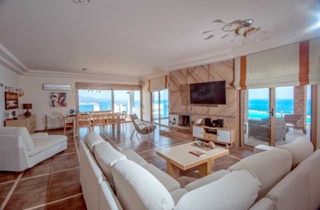 Furnished delightful modern villa of 340m2 is available for sale just 300 meters from the sea, 4km from scenic Agios Nikolaos and 69km from Heraklion International Airport. Within a land plot of 3.300 m² offers wide and unobstructed views of Mirabello Bay and the distant mountains. The ground floor opens in a hall with a characteristic stone staircase and consists of a living room with a modern fireplace, a dining room opening onto a large veranda, a separate kitchen, an office room, a laundry room and a W.C. The staircase leads to the upper floor where it consists of the master bedroom with two wardrobes and an internal bathroom with shower, three comfortable bedrooms and a bathroom with a hydromassage bath. In the basement there is an unfinished guesthouse with an independent entrance that has an open plan kitchen – living room, two bedrooms and a bathroom. Designed according to the specifications of luxurious residence, it has all the modern comforts such as: air conditioning, solar heating, central heating, alarm, entrance phone, satellite and double glazing. Outside there is a living area with a pergola, a swimming pool, parking area, a closed garage of a vehicle and a wonderfully landscaped garden. Essentially contributing to quality excellence and flawless functionality this villa would make everyone proud of his choice.